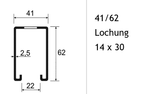 Montageschiene System 41/62 gelocht 14*30 600cm