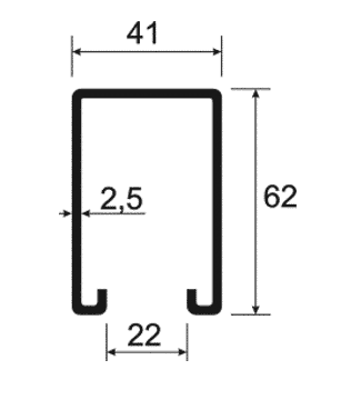 Montageschiene System 41/62 ungelocht 600cm