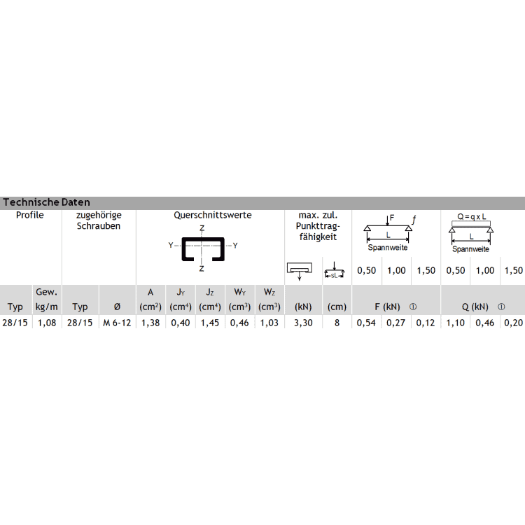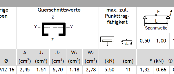 Montageschienen kaltgewalzt, geeignet zum Anschweißen und Andübeln. Ausführungen: Stahl walzblank, Stahl feuerverzinkt und sendzimirverzinkt, Edelstahl 1.4401/1.4571 (A4), Edelstahl 1.4301 (A2) Passende Schrauben: HS 28/15, M6 – M12 Passende Gewindeplatten GP 28/15 M4 – M10 Lieferlänge ca. 6 m. Andere Längen und Profilabmessungen auf Anfrage. Alle Tragfähigkeitsangaben berücksichtigen eine zulässige […]