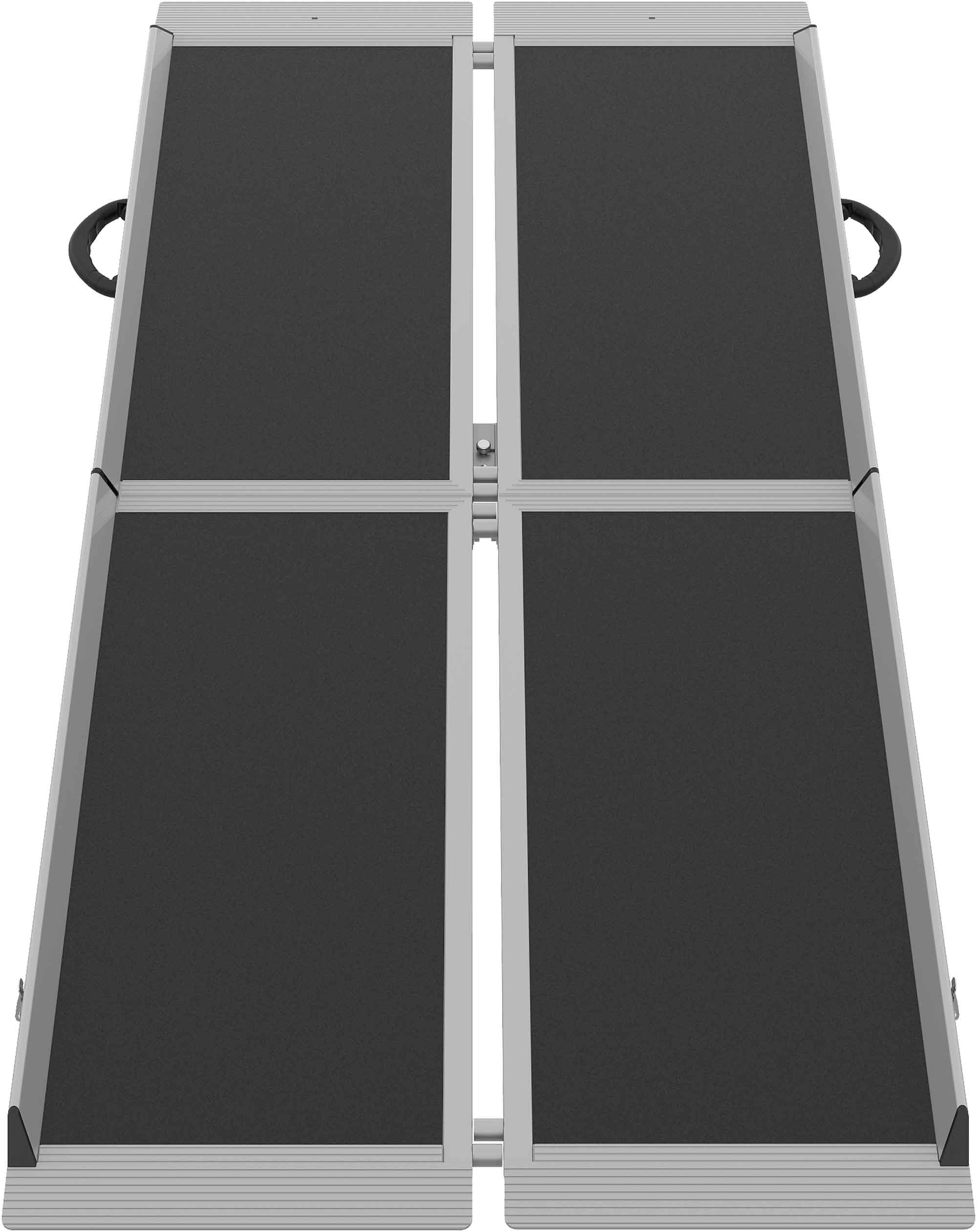 Zusätzliches Plus, aufgrund der Bauweise, Sie können die Rampe schnell aufteilen und für die Lagerung zusammenklappen.