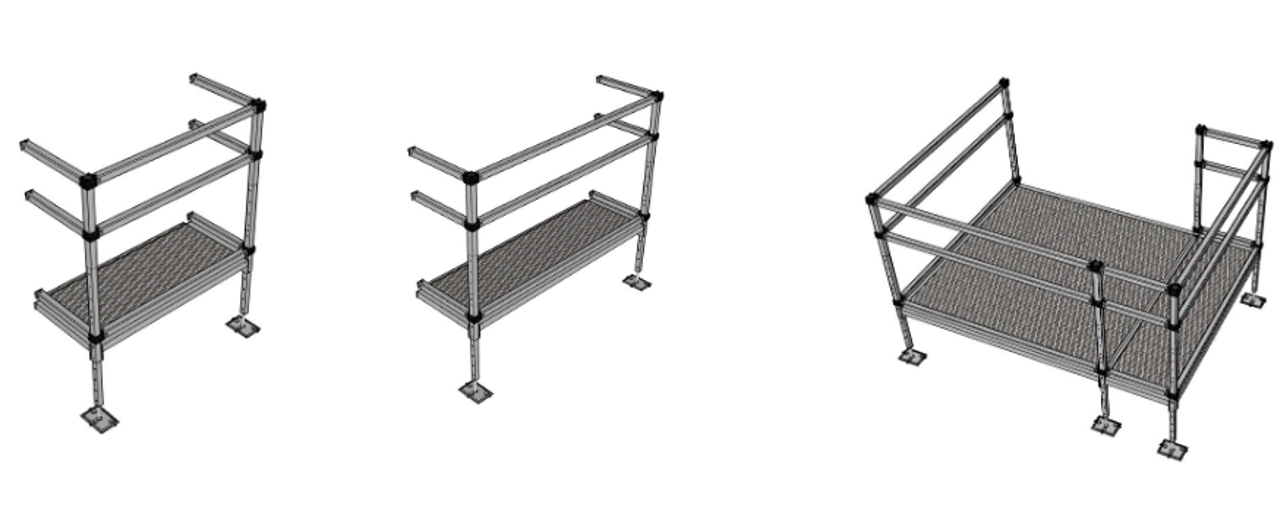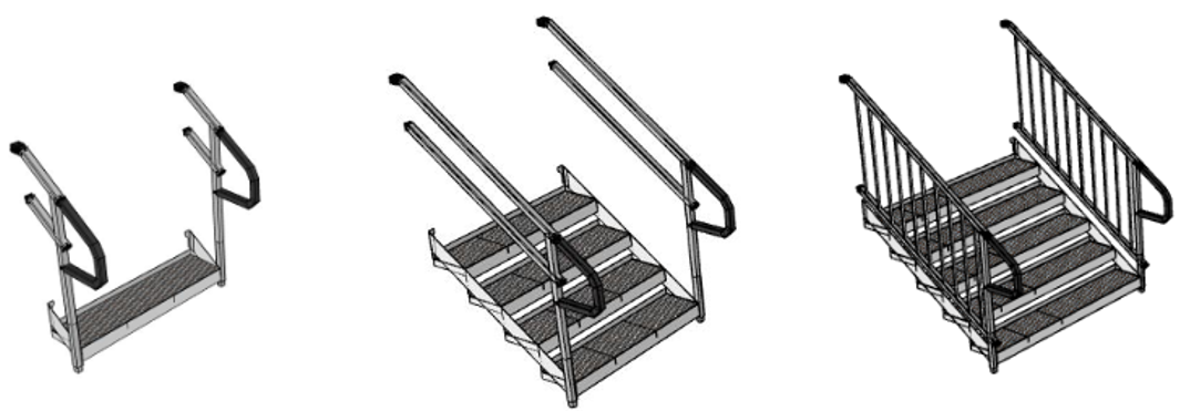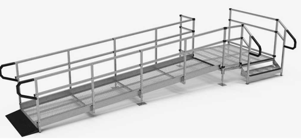 - Modular & erweiterbar: Rampenläufe, Podeste und Zubehör lassen sich systematisch kombinieren und bei Bedarf erweitern.
